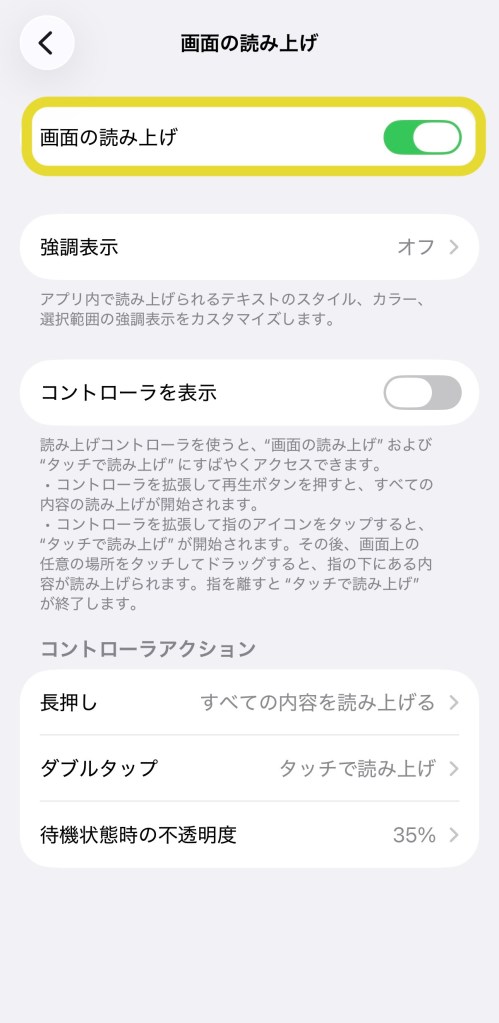 “画面の読み上げ / Text-to-Speech“